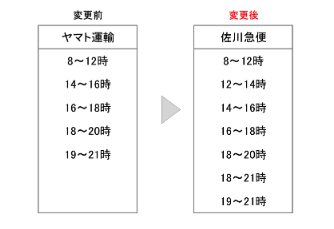 配送会社の変更に伴い一部お届け時間帯に変更がございますので、