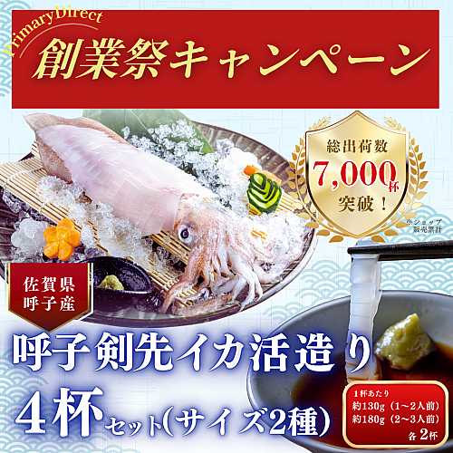 ★創業祭2025★【新物】呼子剣先イカ活造り4杯セット(サイズ2種・各2杯)