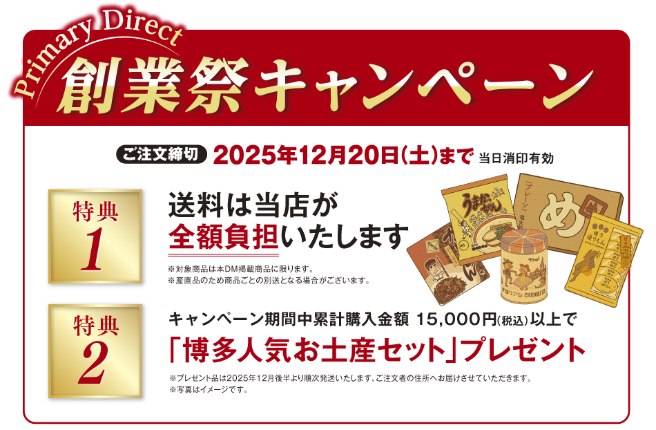 ☆創業祭は対象商品の送料当店負担&期間累計15,000円以上ご注文でプレゼント!