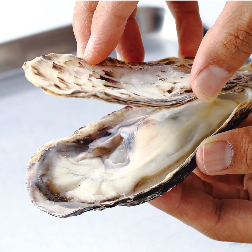 ぜひ殻ごと手に取りチュルリと啜ってください。唇に伝わるふくよかな弾力、そして磯の優しい塩気と共に広がる、濃厚だけどしつこすぎないミルキー感が舌をたゆたいます。ミネラル、ビタミンなど栄養が詰まった牡蠣はまさに、育った海そのものの味を体感するかのよう。