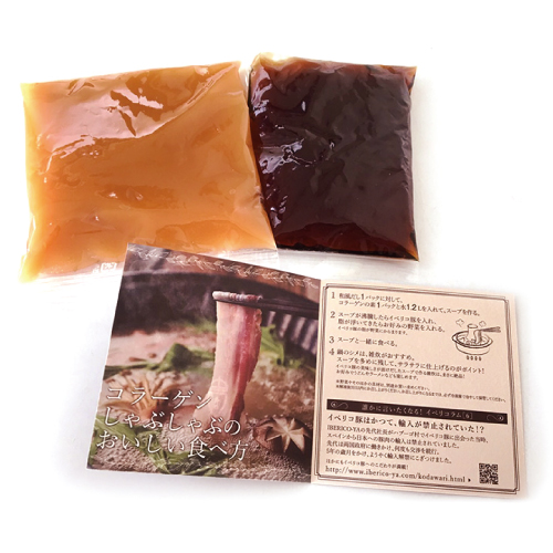 | 内容量 | ●イベリコ豚バラ300g ●イベリコ豚肩ロース140g ●和風だし72g・コラーゲンの素125g |